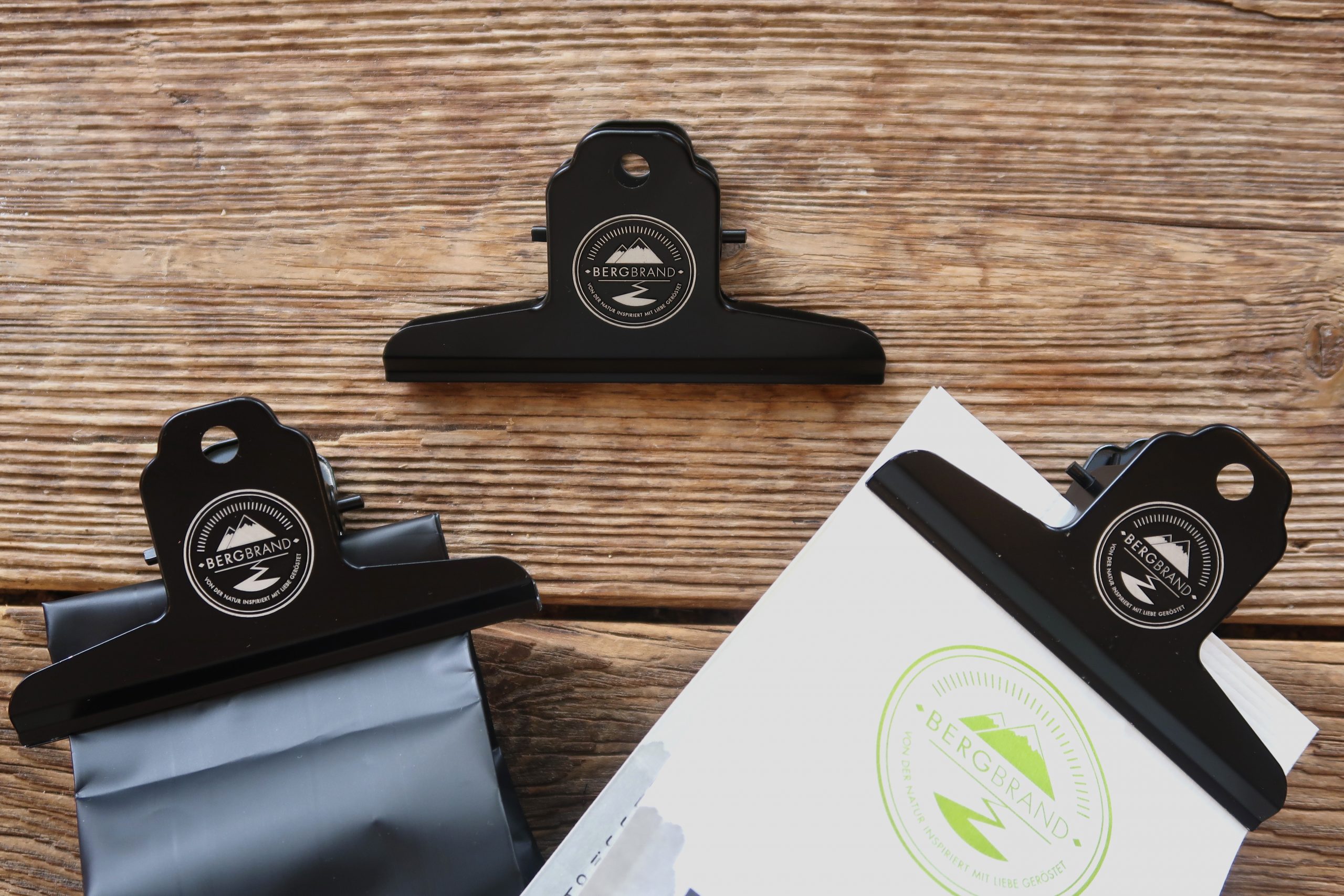Die praktische, elegante Kaffeeklammer ist der perfekte Verschluss für Deine Kaffeetüte, exklusiv mit BERGBRAND Logo.